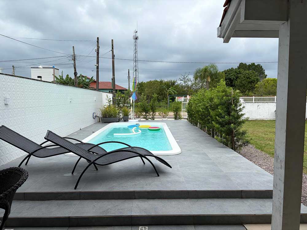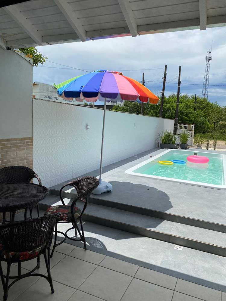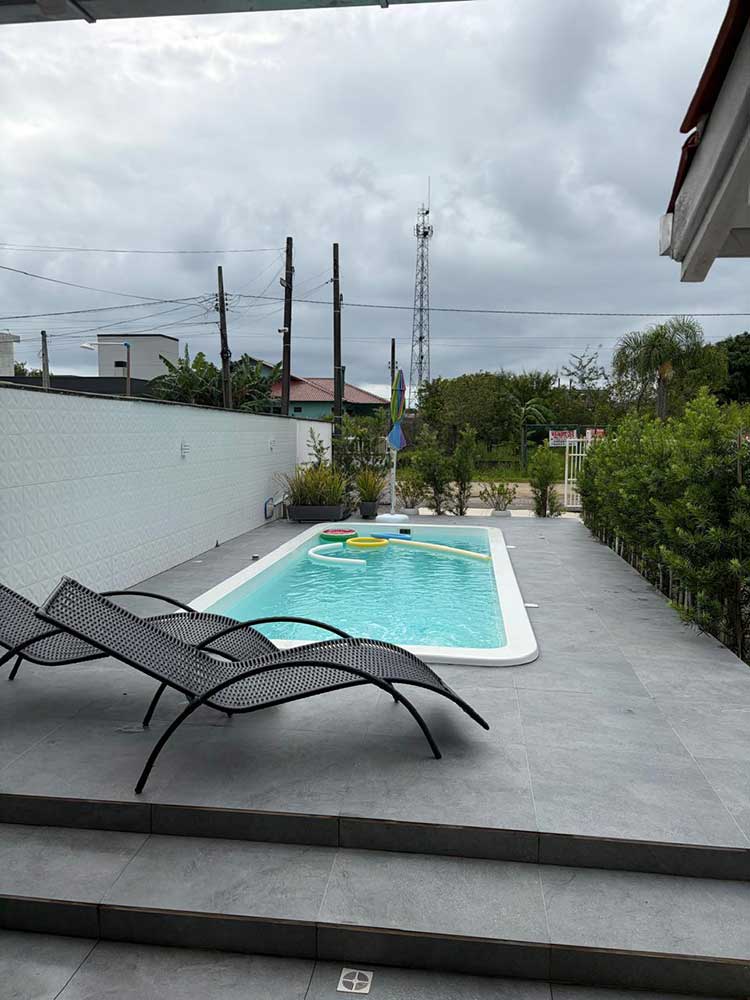 Aluga-se casa localizada na Praia do Meio (Enseada da Pinheira), aproximadamente 400 metros da praia, ideal para famílias com crianças. A casa conta com: