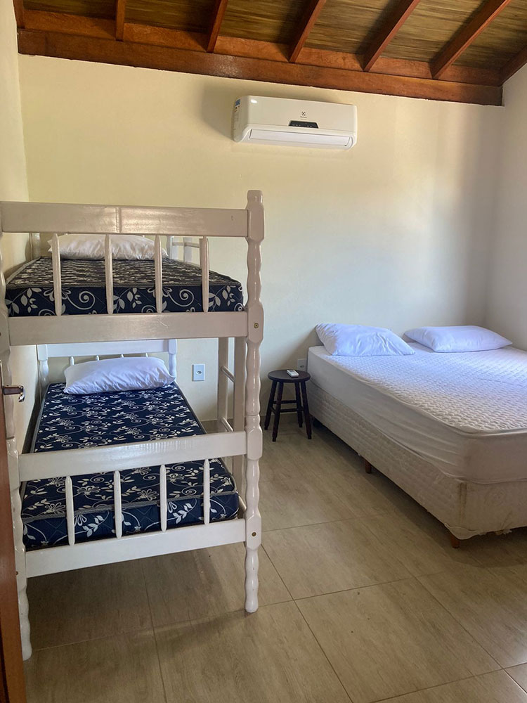 - 01 dormitório (c/ cama de casal + cama de solteiro e ar condicionado)
