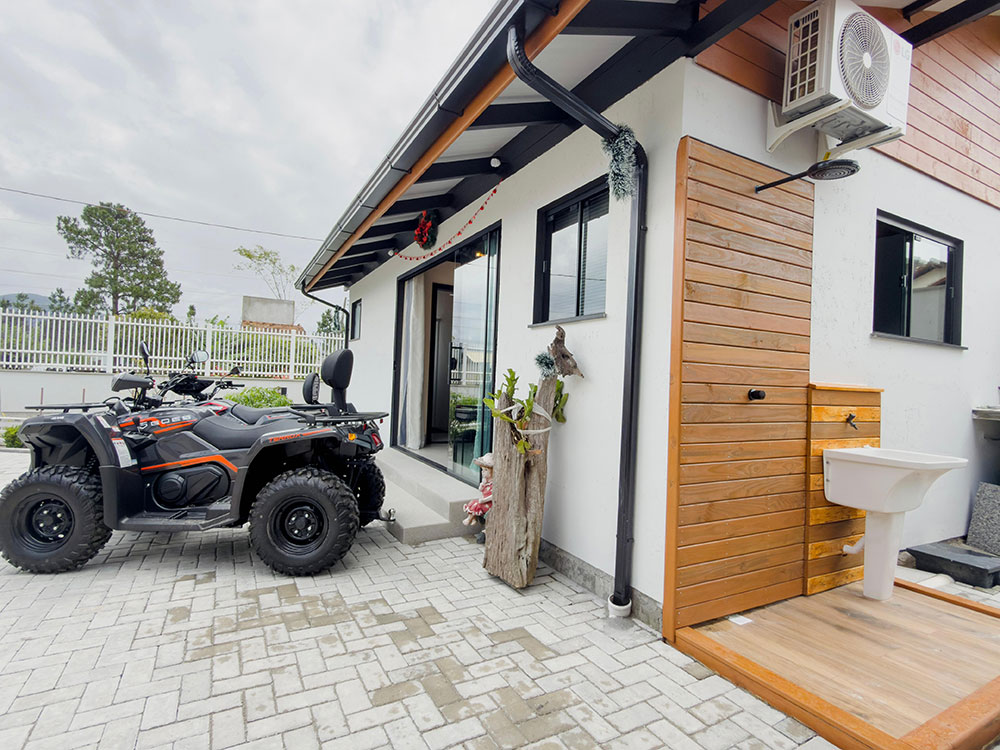 - Área de serviço (com ducha externa, churrasqueira, espetos, grelha e tanque)