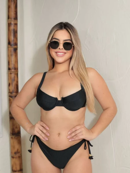 Conjunto Bíquini Com Bojo Sunkini Piscina Short com Ajustes nas Laterais Amarrar Forrado Moda Praia