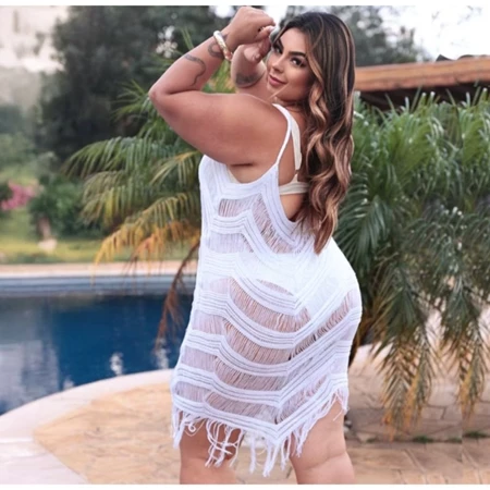 Saída De Praia Franja Plus Size Estilo Transparente Moda Verao Feminino