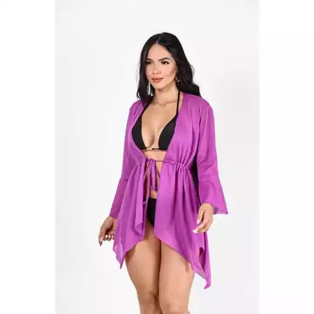 Saida de praia feminino Kimono curta de amarrar com cinto Moda praia feminina Roupa de praia