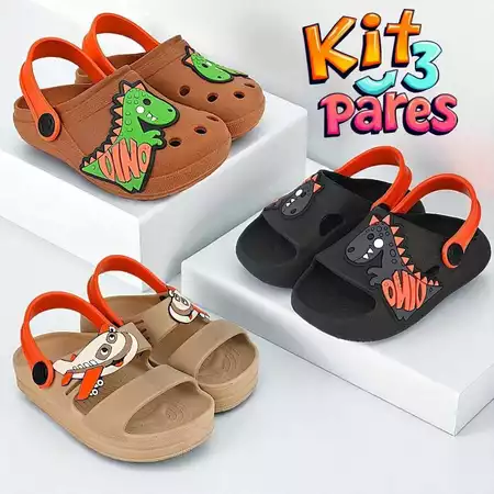 Kit 3 Pares Sandália Papete Infantil Menino Confortável