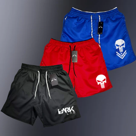 Kit 3 Short de Elastano Dry fit Bermuda de Praia Piscina e Academia