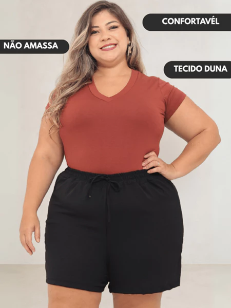 KIT 2 Bermuda Shorts Feminino Duna Confortável Saída Praia Plus Tecido Leve Preto Bege Verde Rosa