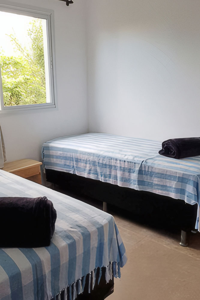- 02 dormitórios (01 com cama de casal, 01 com 02 camas de solteiro)