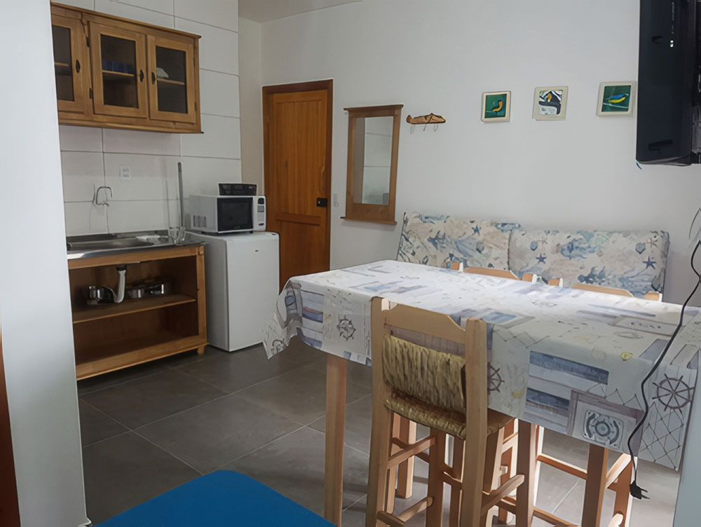 - Ar condicionado no dormitório de casal e ventilador de teto no dormitório de solteiro