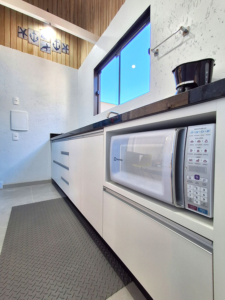 - Cozinha completa (com microondas, liquidificador, air fryer, sanduicheira e cafeteira)