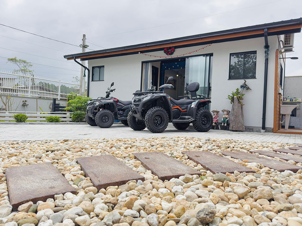 - Área de serviço (com ducha externa, churrasqueira, espetos, grelha e tanque)