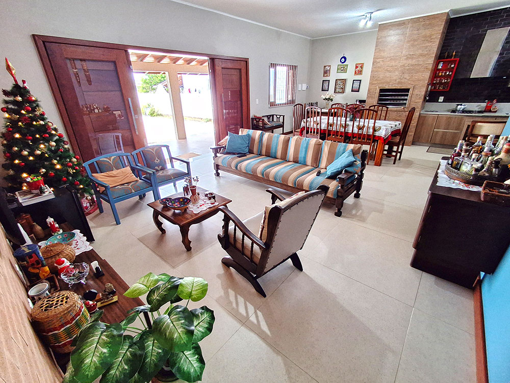 - Cozinha completa (com geladeira duplex, microondas, forno elétrico, liquidificador, air fryer, sanduicheira, cafeteira, churrasqueira, espetos e grelha)