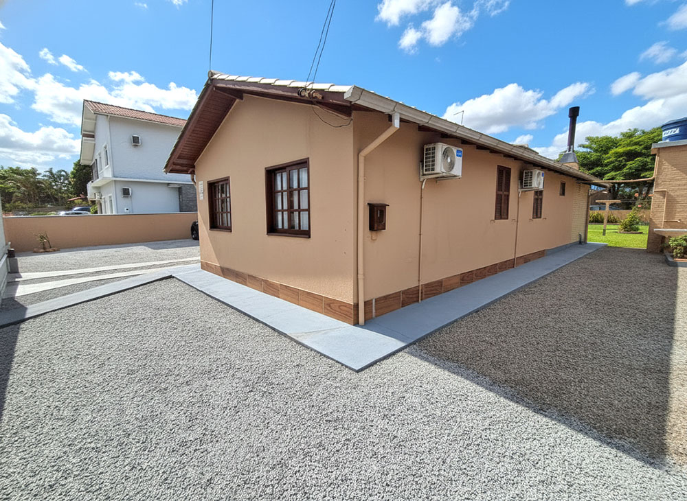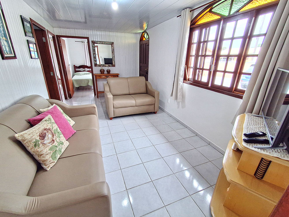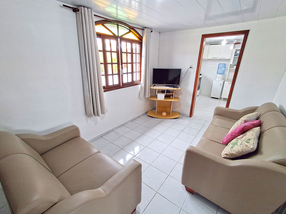 O residencial oferece duas casas para aluguel, as casas contam com 03 dormitórios, cozinha completa, internet Wi-Fi, churrasqueira e acomodações para 05 e 06 pessoas.