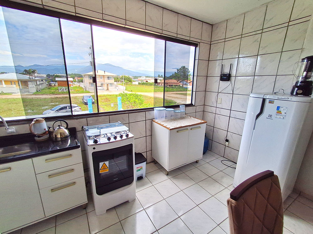Aluga-se Piso Térreo de residência localizada na Praia de Baixo, de frente para o mar, bem no centrinho da Pinheira, próximo ao Supermercado Santos e comércio local. A casa conta com: